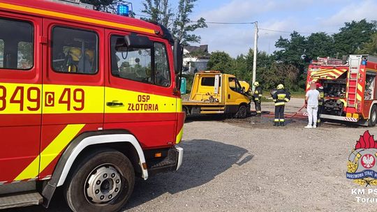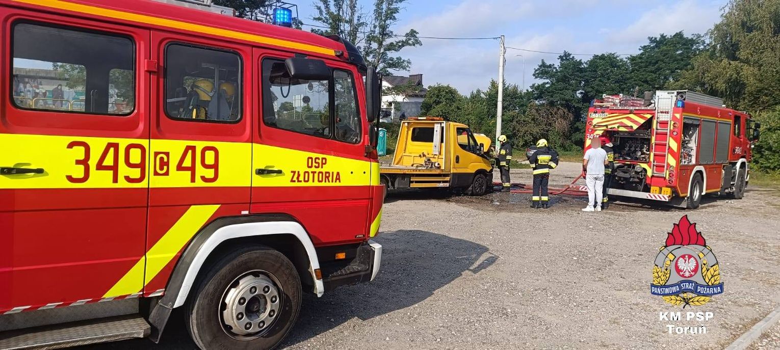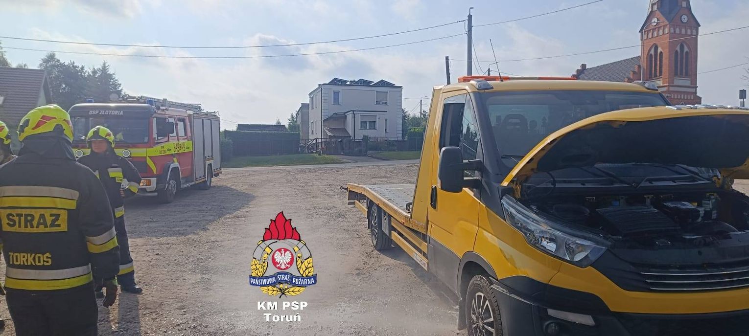 Zgłoszenie o zdarzeniu szybko trafiło do straży pożarnej, w wyniku czego na miejsce przybyły dwa zastępy straży – jeden z Jednostki Ratowniczo-Gaśniczej nr 3 w Toruniu oraz przedstawiciele Ochotniczej Straży Pożarnej w Złotorii. Po dotarciu na miejsce, strażacy niezwłocznie podjęli działania mające na celu opanowanie sytuacji. Zabezpieczyli teren wokół incydentu, co było kluczowe dla zapewnienia bezpieczeństwa osób znajdujących się w pobliżu.