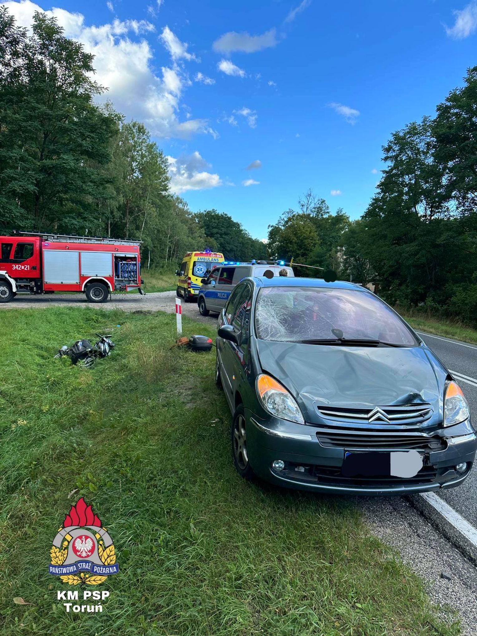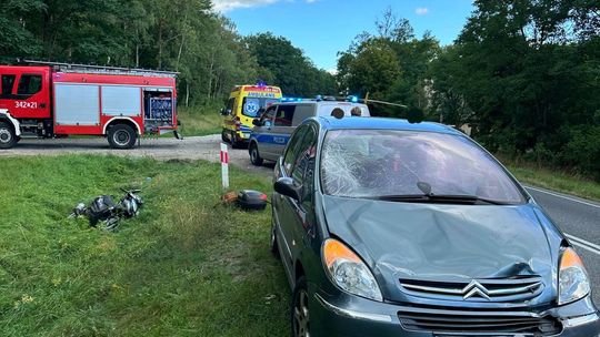 W wyniku tego zdarzenia jedna osoba została poszkodowana. motorowerzysta został przetransportowany do szpitala Lotniczym Pogotowiem Ratunkowym. W samochodzie osobowym nikt nie ucierpiał.