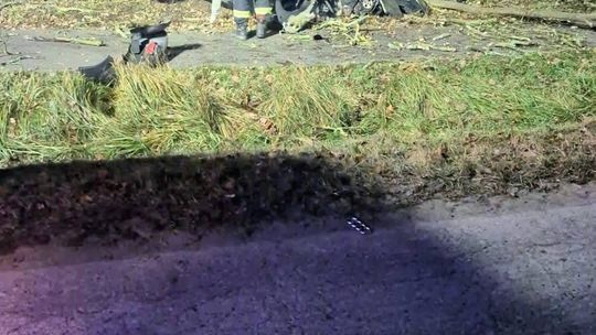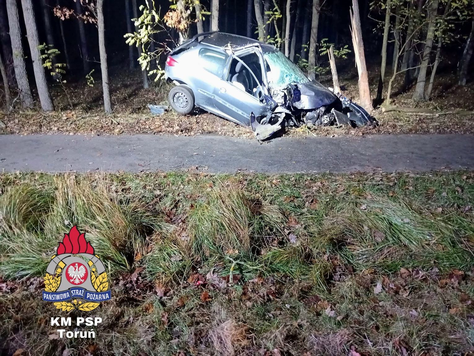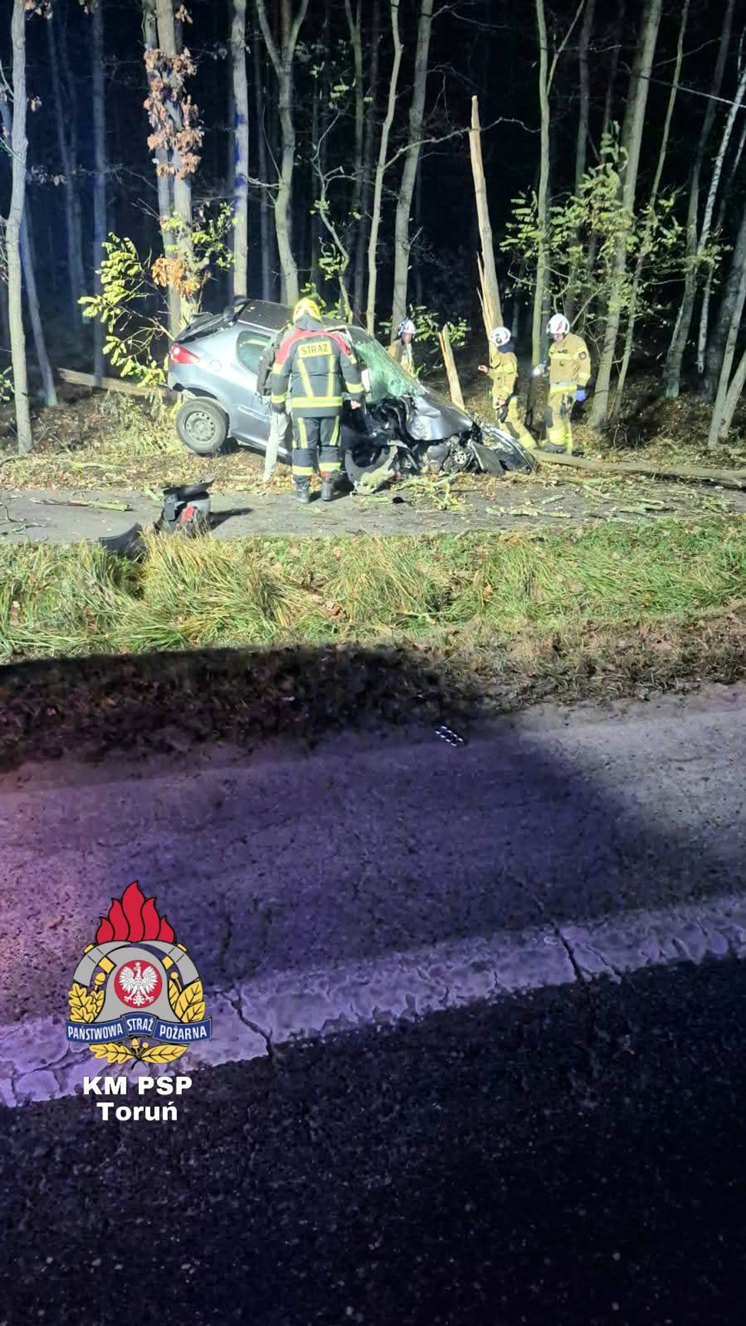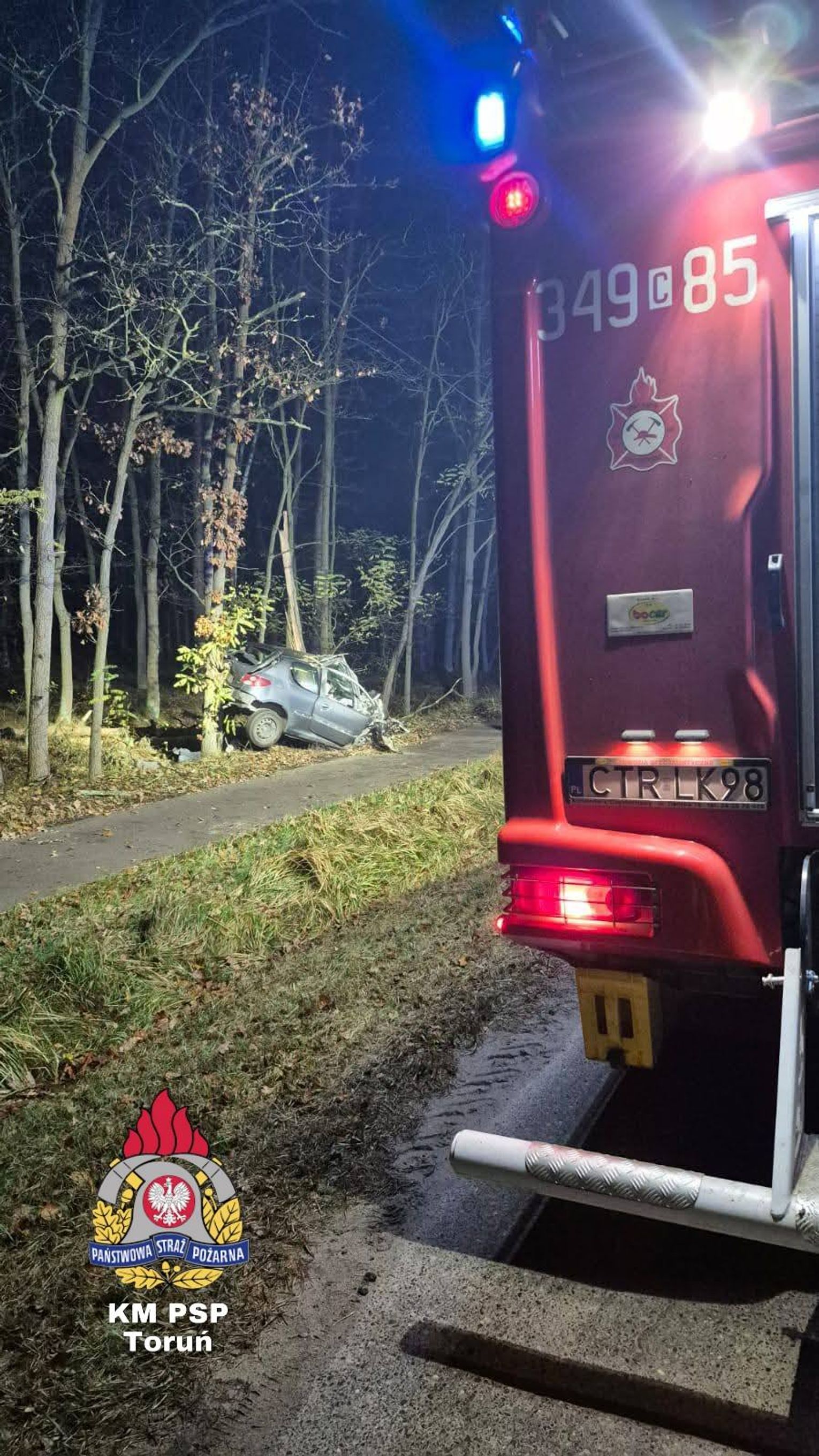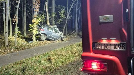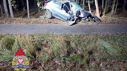 Do zdarzenia doszło, gdy kierujący samochodem osobowym stracił panowanie nad pojazdem, wypadł z drogi i z impetem uderzył w przydrożne drzewo. Jak wynika ze zdjęć opublikowanych przez służby ratunkowe, przód pojazdu został całkowicie zmiażdżony.