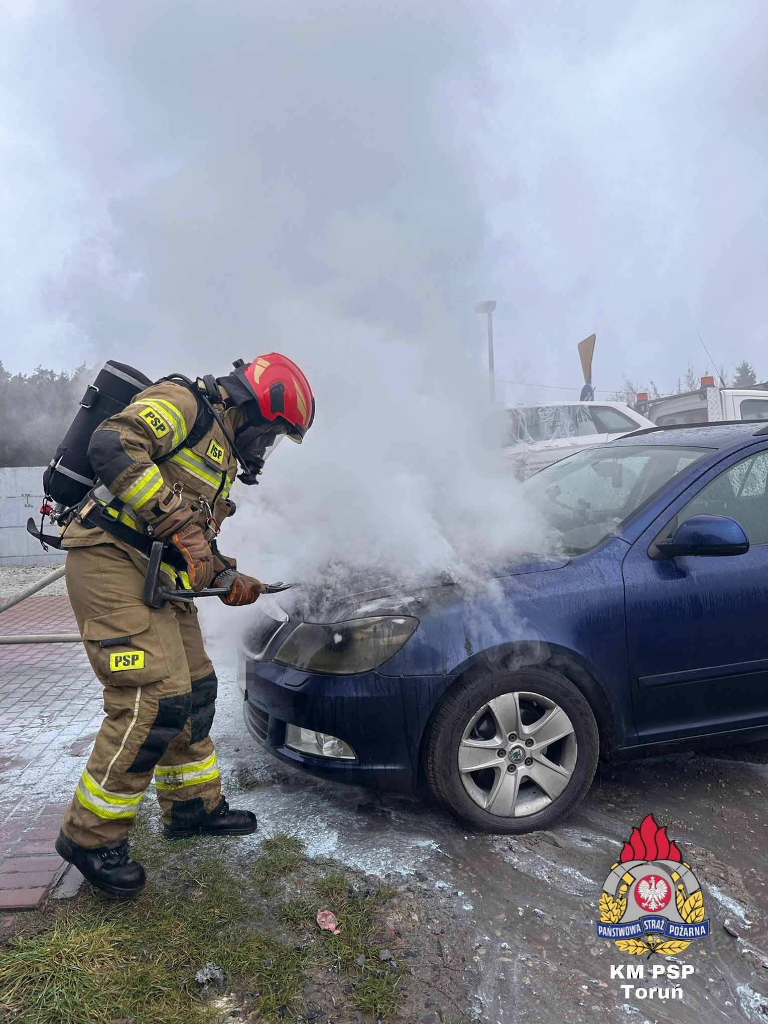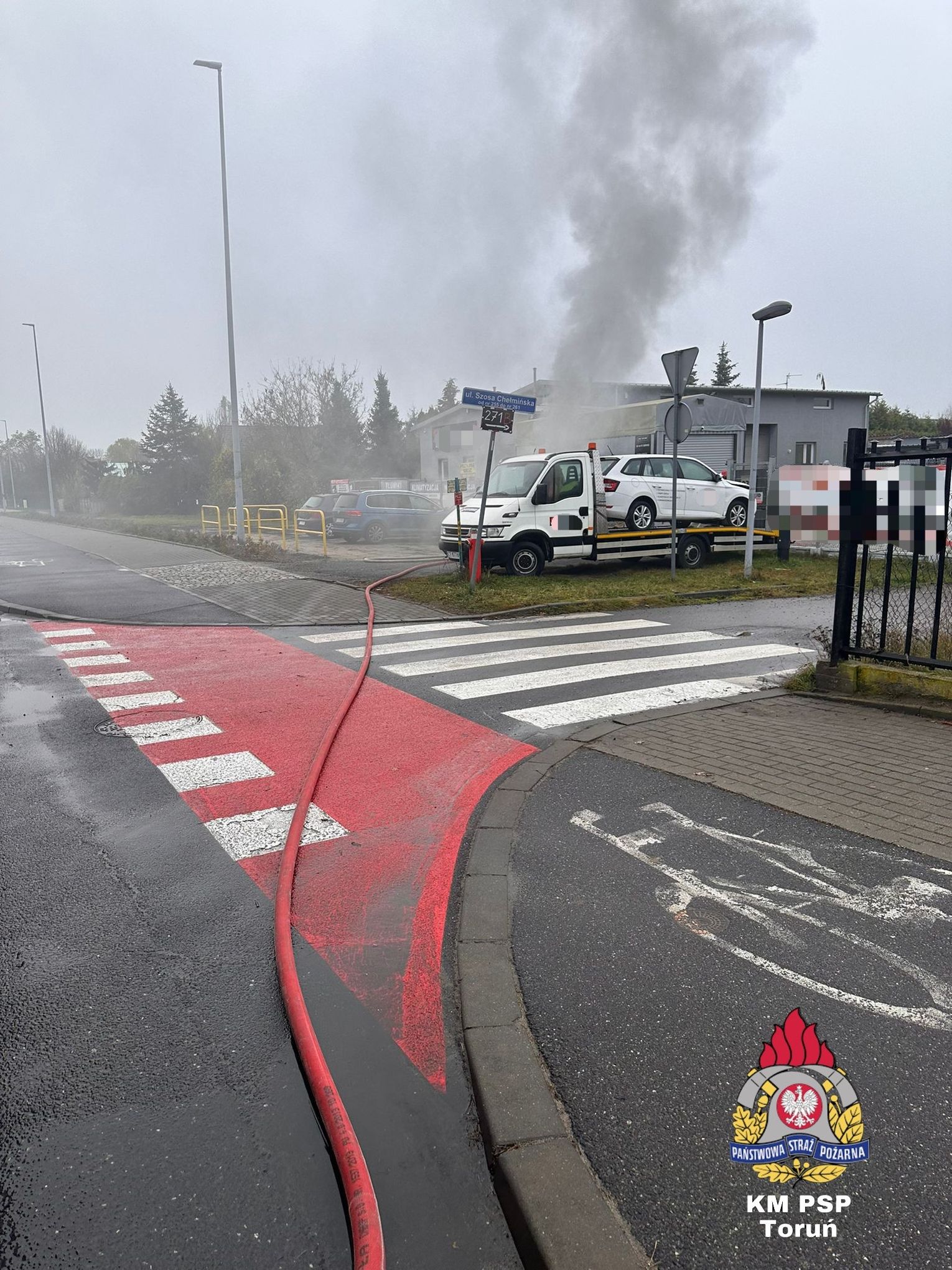 Gdy na miejsce dotarły zastępy Państwowej Straży Pożarnej z Jednostki Ratowniczo-Gaśniczej nr 1 (JRG nr 1), zgłoszenie zostało potwierdzone. Pożar był w fazie dynamicznego rozwoju, a z maski samochodu wydobywało się silne zadymienie, które mogło utrudniać widoczność na ruchliwej Szosie Chełmińskiej.