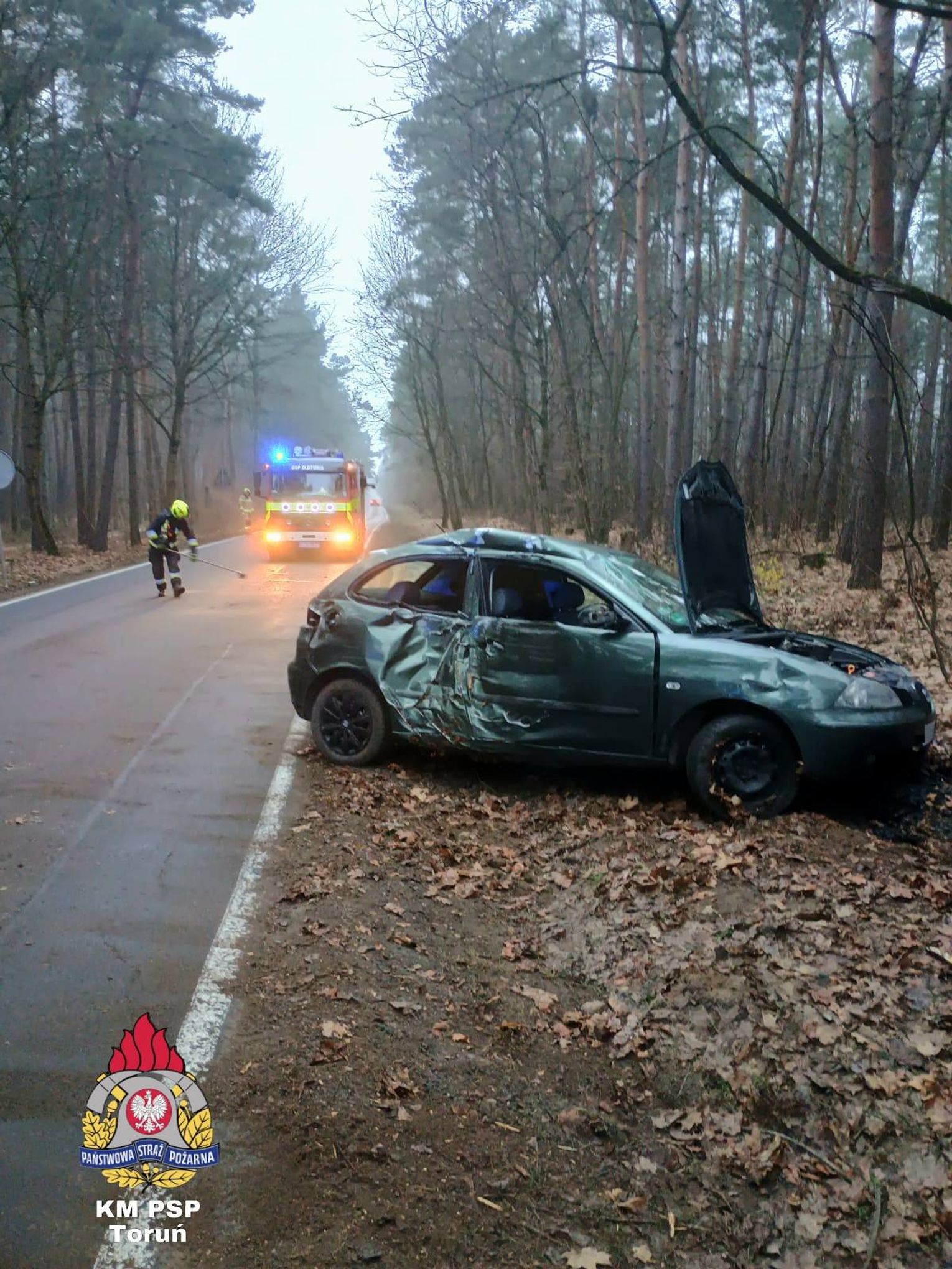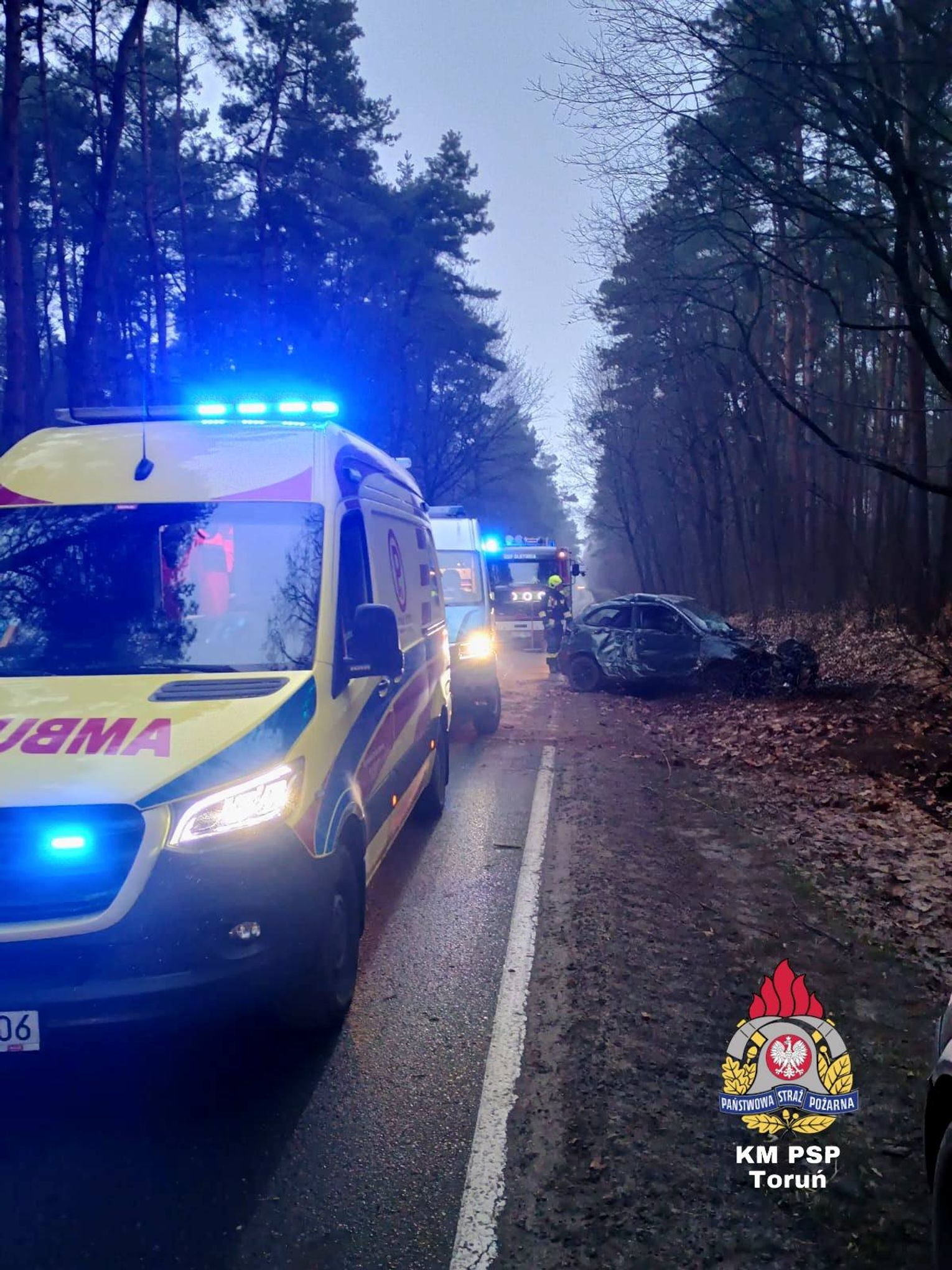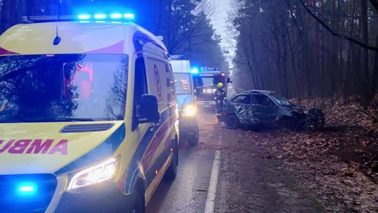 Kierowca został przewieziony do szpitala. Na miejscu była nie tylko karetka pogotowia, ale policja i OSP Złotoria.