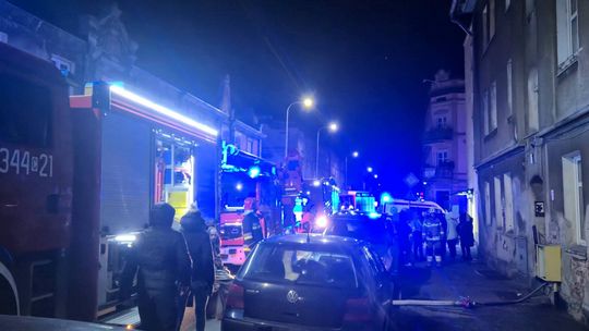Do niebezpiecznego zdarzenia doszło w nocy. Służby otrzymały zgłoszenie o gęstym dymie i płomieniach wydobywających się z klatki schodowej kamienicy. Sytuacja była o tyle groźna, że ogień w takim miejscu może szybko odciąć lokatorom jedyną drogę ucieczki z mieszkań.