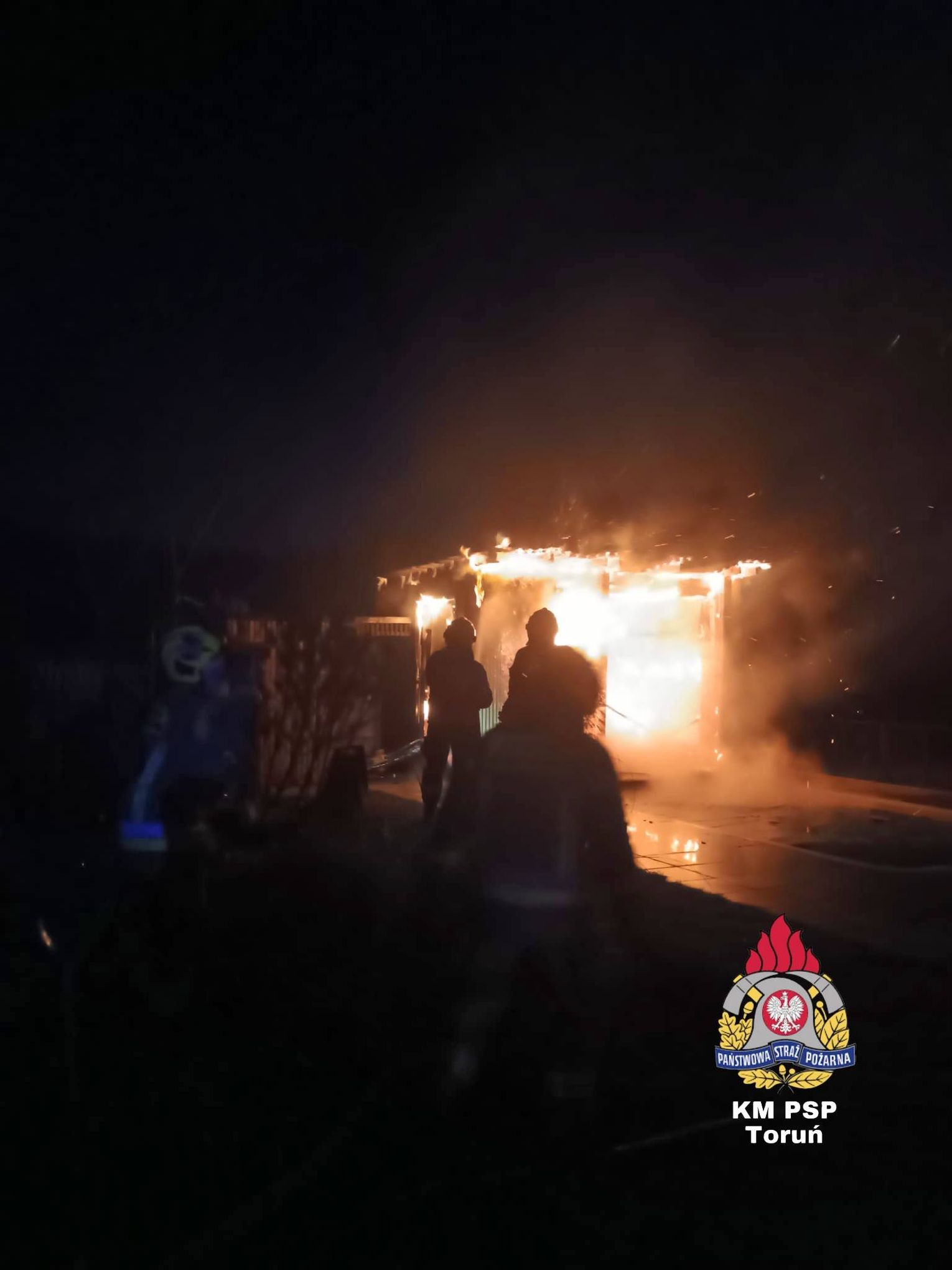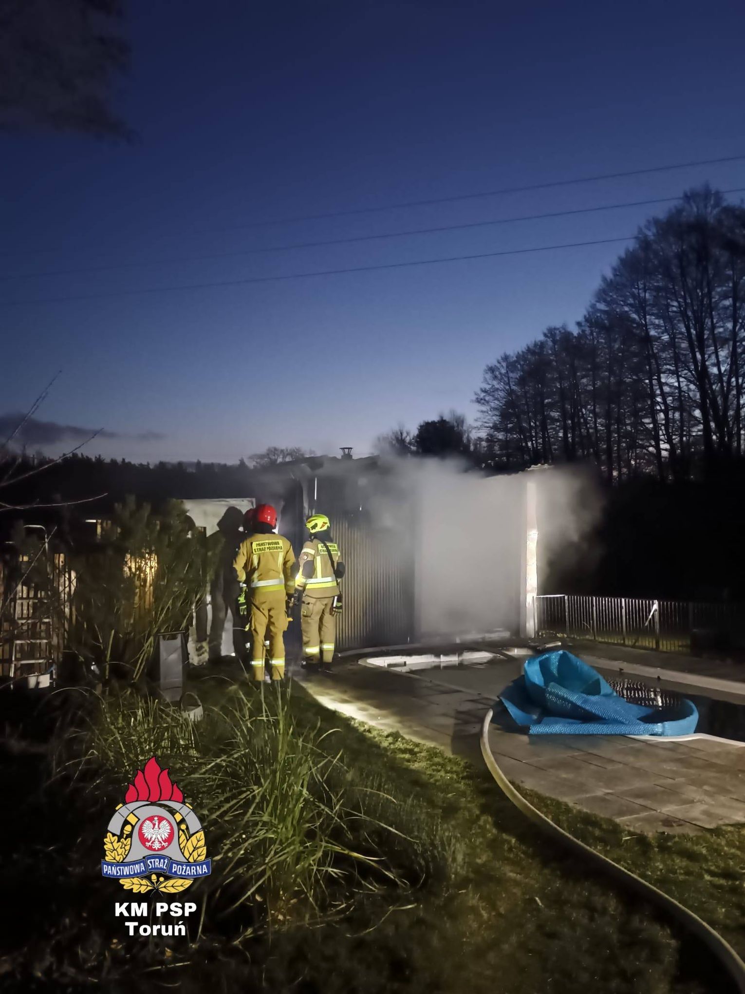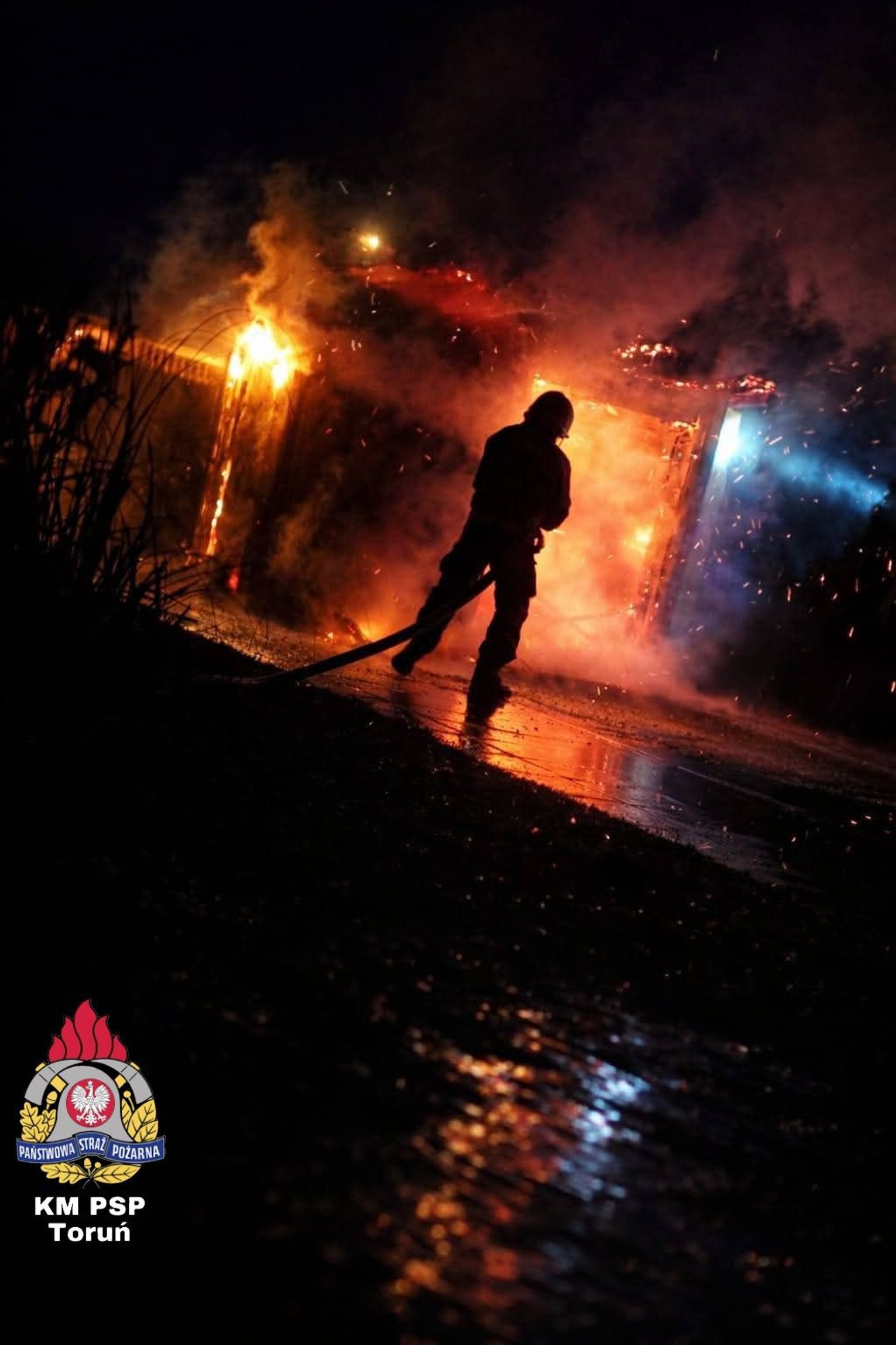 Tym razem scenariusz był jeszcze groźniejszy. Ogień nie trawił wolnostojącej konstrukcji na zewnątrz, lecz uderzył w saunę znajdującą się wewnątrz budynku gospodarczego. Skala zagrożenia była ogromna. Do walki z żywiołem rzucono potężne siły – aż 7 zastępów straży pożarnej. Syreny wozów z JRG nr 3, Lubicza, Gronowa, Rogówka, Rogowa, Młyńca Pierwszego i Grębocina przecinały świąteczną ciszę, niosąc ratunek tam, gdzie ogień próbował odebrać świąteczny spokój.